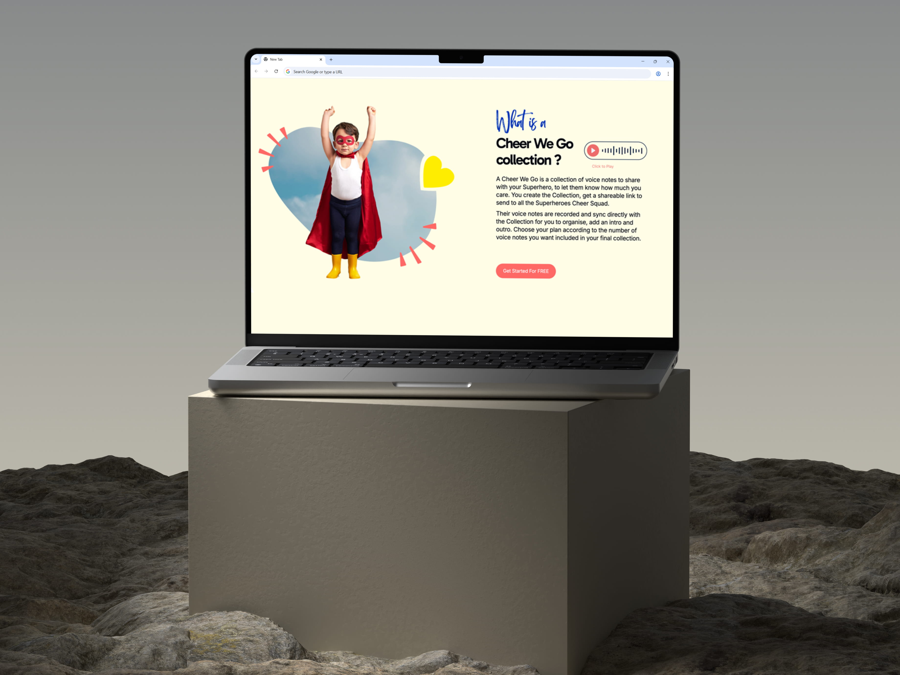 Cheer We Go is positioned as a simple way to create a voice note collection that can be replayed and kept as a memory.